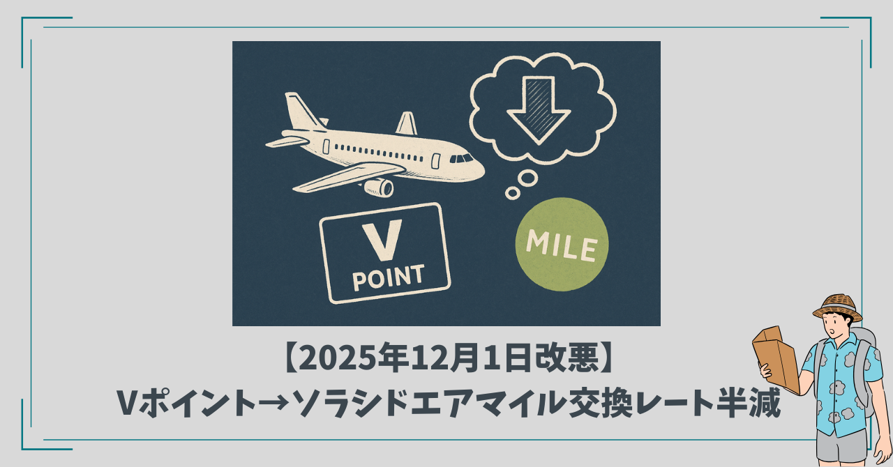 - 変更後(2025年12月1日〜):1 Vポイント = 1 ソラシドエアマイル